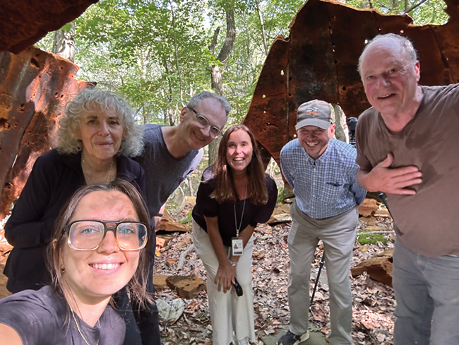 It was a 45-minute hike to YAM’s foam house photo shoot in early September. Art director Jeanine Dunn brought the bug spray. Left to right: photo assistant Sophia Pallwein-Prettner; Dunn; photographer Chris Buck; editor Pippa Jack; executive editor Mark Branch ’86; architect and foam visionary Turner Brooks ’65, ’70MArch.