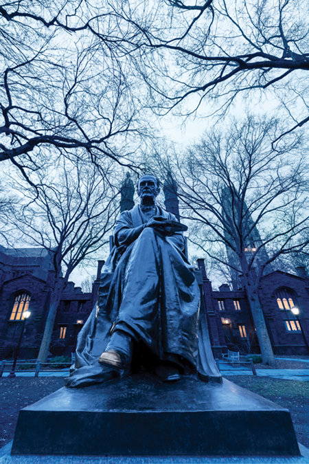 Last LookBest foot forwardWill rubbing President Woolsey's toe bring good luck? Theodore Dwight Woolsey, Class of 1820, president of Yale from 1846 to 1871, has presided over Old Campus for 130 years. Of more recent vintage: the suggestion that rubbing Woolsey’s toe (the shiny one) brings good luck. Offered up by decades of tour guides and refuted by generations of older alumni on social media, the toe remains a draw. Who are we to step on the fun?
