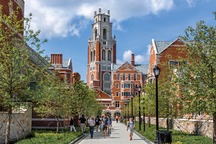 Like the original colleges, the new ones have a wealth of ornamental stone carvings. One of them is a full-body likeness of Stern himself, holding a set of blueprints and wearing a suit and his trademark loafers. (See page 1 of this issue.) It has become known as the “Bobgoyle.”