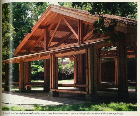 Back in our October 1985 issue, we featured a pavilion in East Rock Park designed and built by Yale students as part of the School of Architecture's First-year Building Project. Forty years later, it's still there and is well used for parties and picnics. |