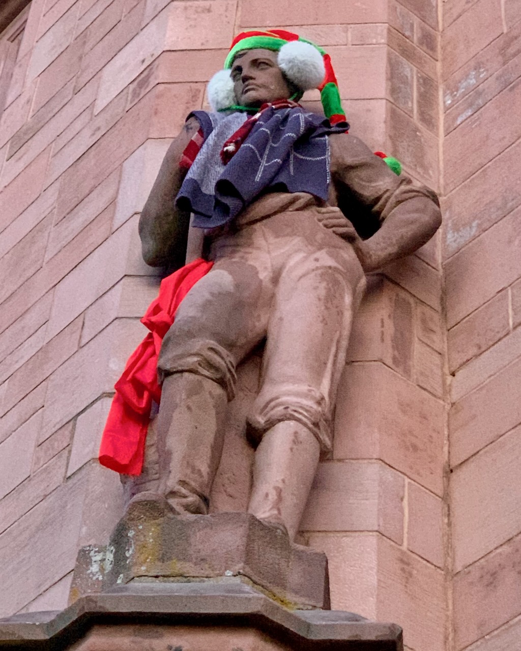 Filed under winter, Sage Hall, School of the Environment, Sage Boy, sculpture