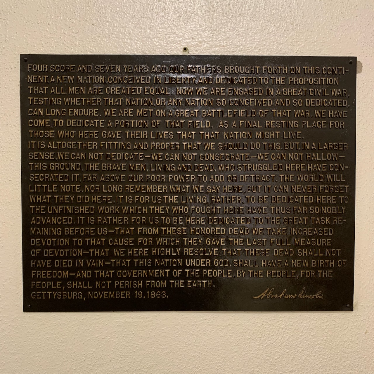 Thursday is Lincoln's Birthday, which reminded us that there is a metal plaque containing the entirety of his Gettysburg Address somewhere in a Yale building. Who knows where to find it?