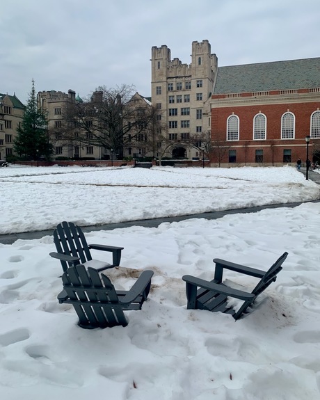 It has barely made it above freezing in the last two weeks, so that foot of snow we got at the end of January has had staying power. The next few days will be slightly warmer, so maybe Silliman's outdoor seating will become more accessible soon.