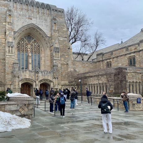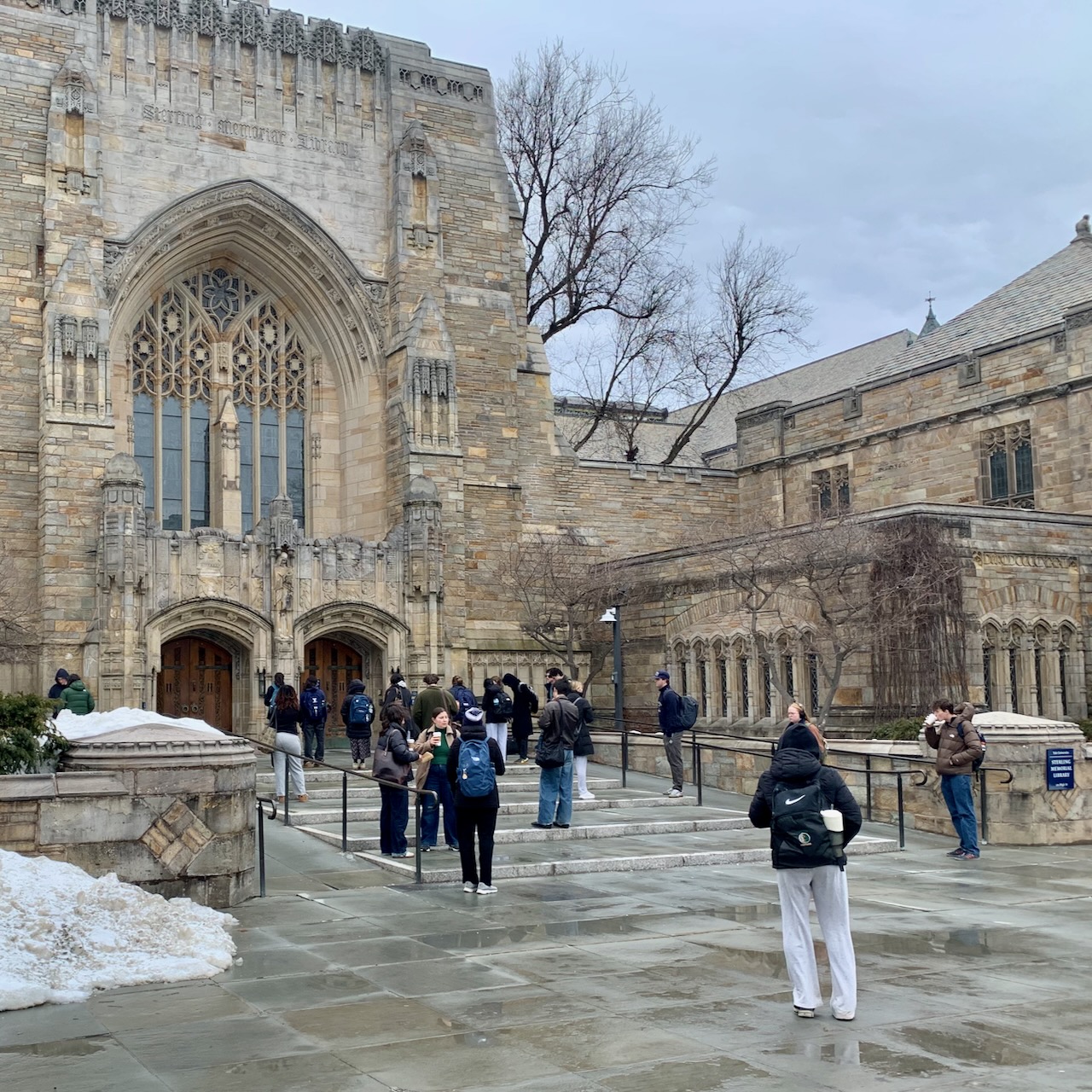 Walking across the campus on Sunday, we saw a bunch of students outside Sterling at 11:58 am waiting for the library's noon opening. Their industry was impressive, especially to those of us who remember struggling to get out of bed on Sunday before dining hall brunch ended at 1.