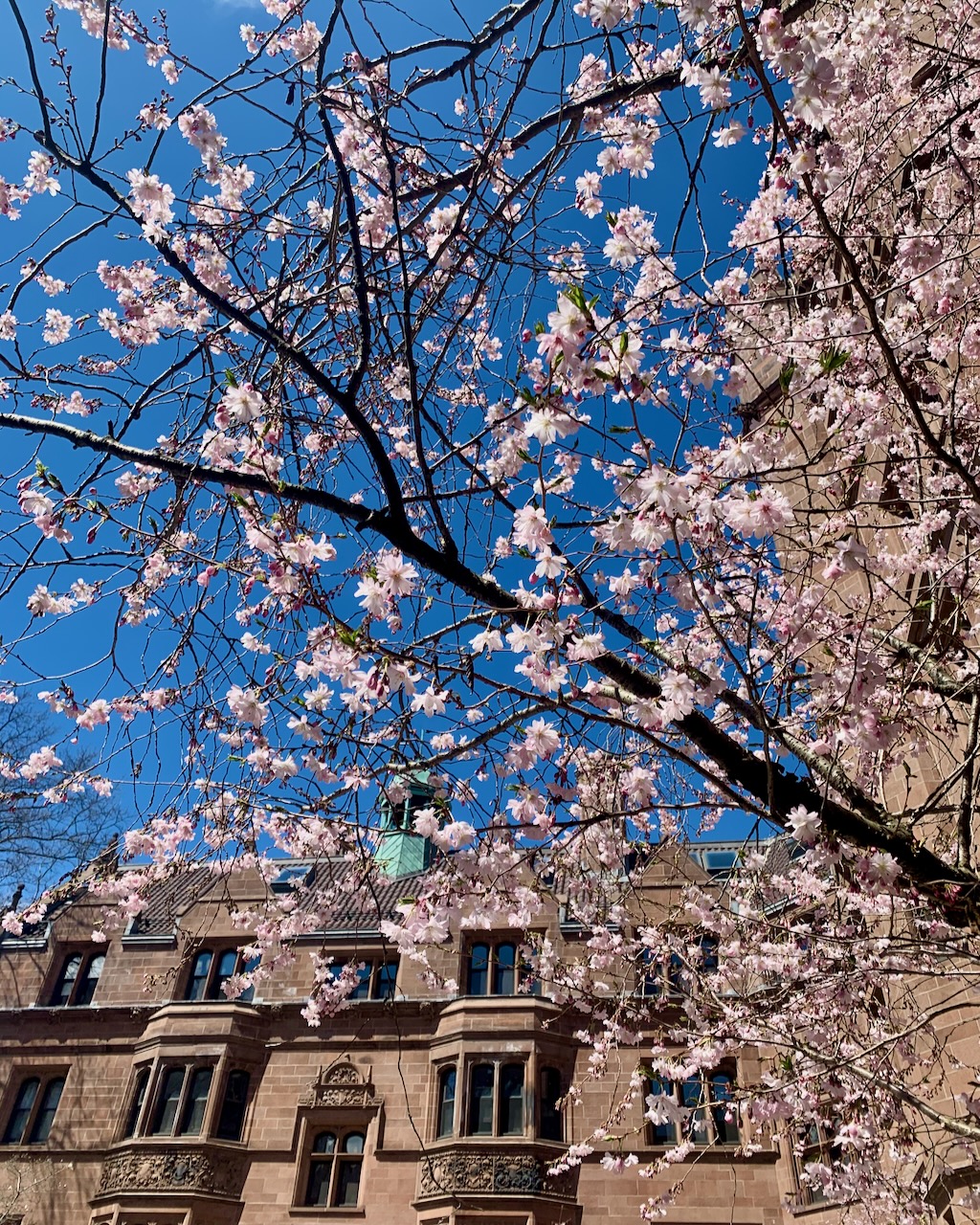 Filed under spring, cherry blossoms, Vanderbilt Hall, Old Campus, flowers